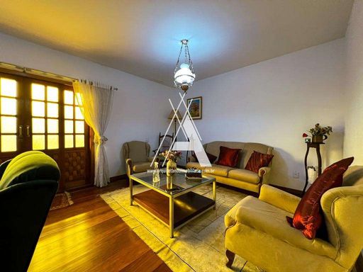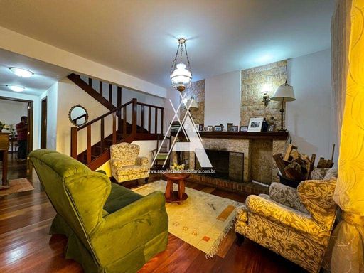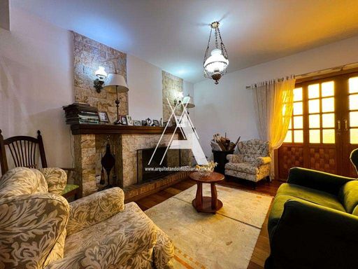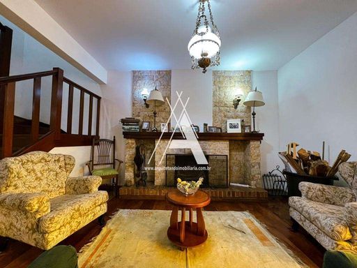 1º pavimento - Sala em 2 ambientes com lareira, Banheiro social, Quarto, Sala de Jantar ampla, Cozinha com armários, Copa